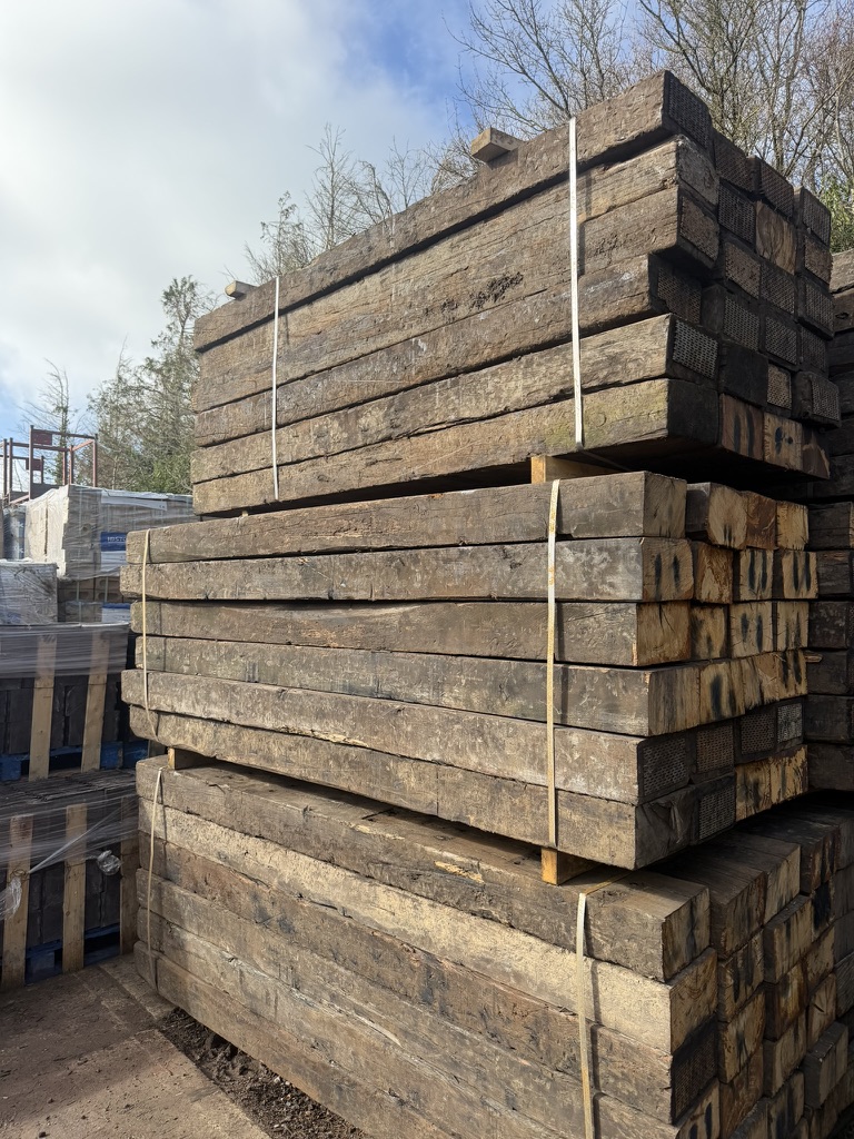 Choose Reclaimed Grade A Oak Full Size Sleepers 250x150x2.6 from Whitford Reclamation for your next landscaping or garden project in Worcestershire, including Bromsgrove. These sleepers are carefully selected to ensure you receive timber with good square ends and at least two good faces, making them ideal for a wide range of outdoor applications.